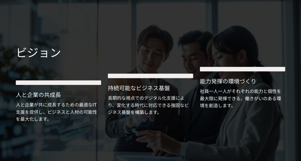 ITの力を通して企業の課題を解決し その先の成長と繋がりを作り出す サービスを提供します。